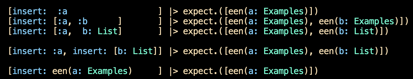 [insert: :a ] |> ...When functions take more than one argument, I enclose them in a list: